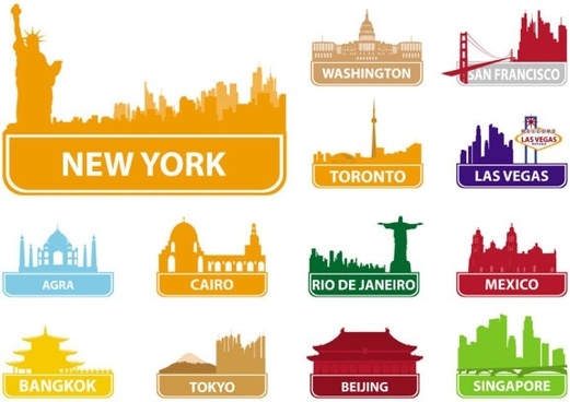 United States New York City Line Travel Skyline Set United