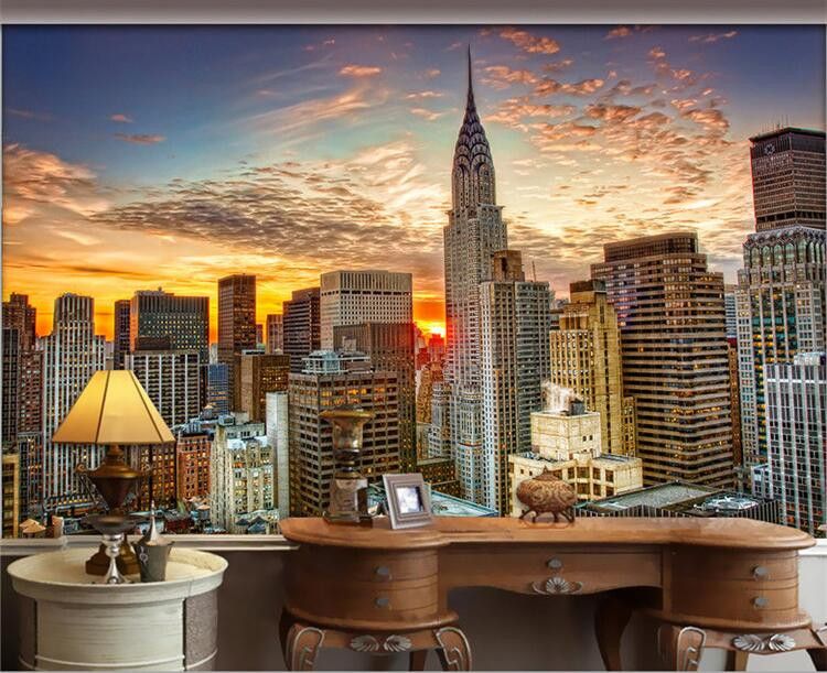 Custom 3d Mural Wallpaper City Evening Landscape Background Sofa