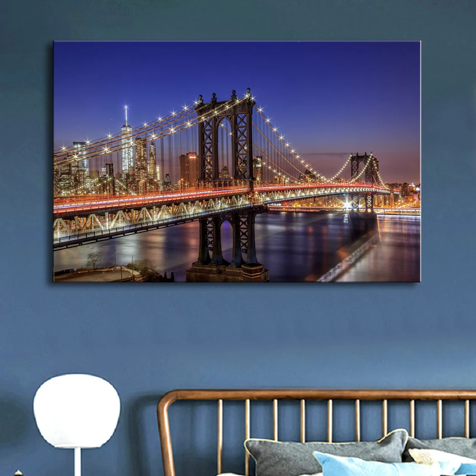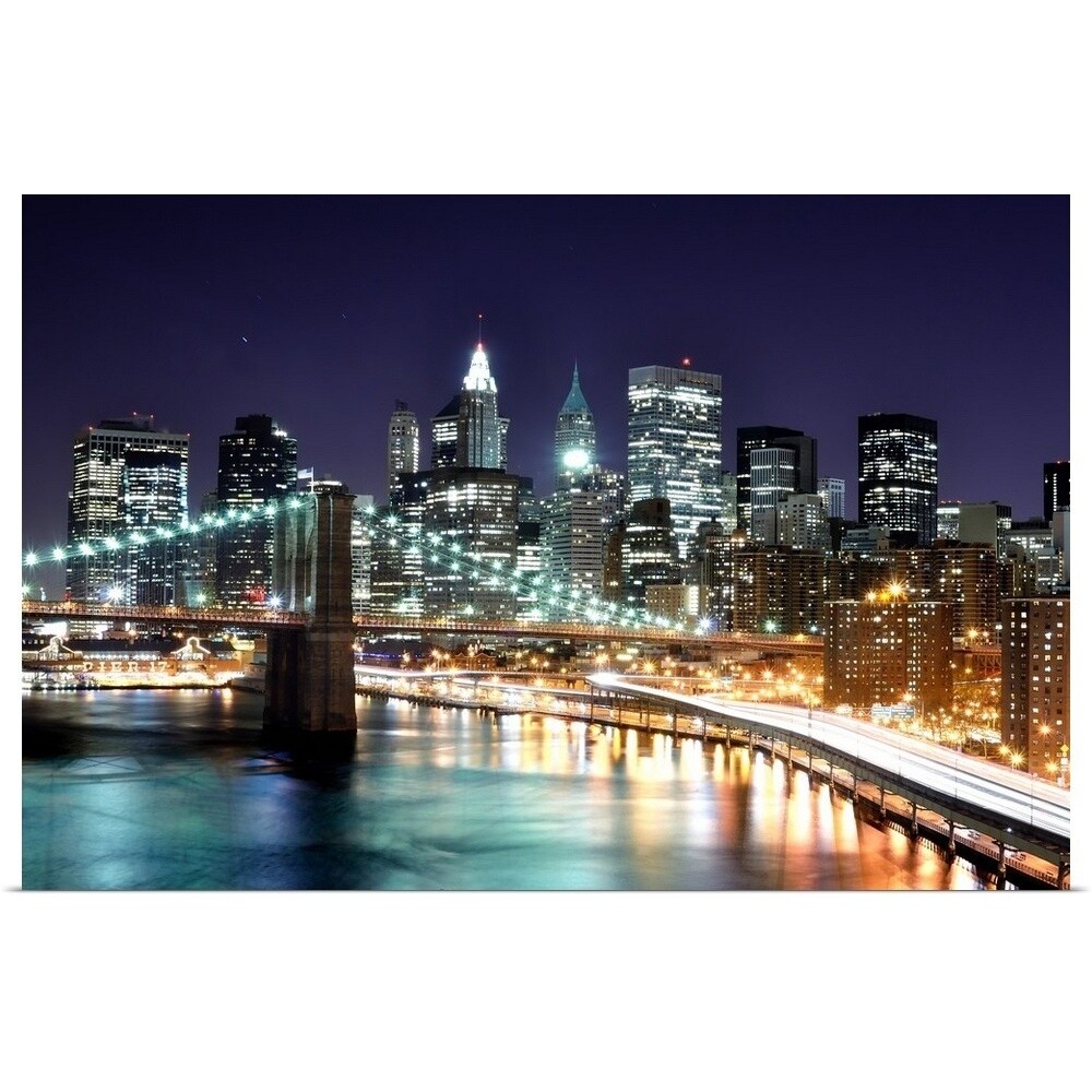 New York City Nyc Manhattan Brooklyn Bridge Skyline At Night Photo