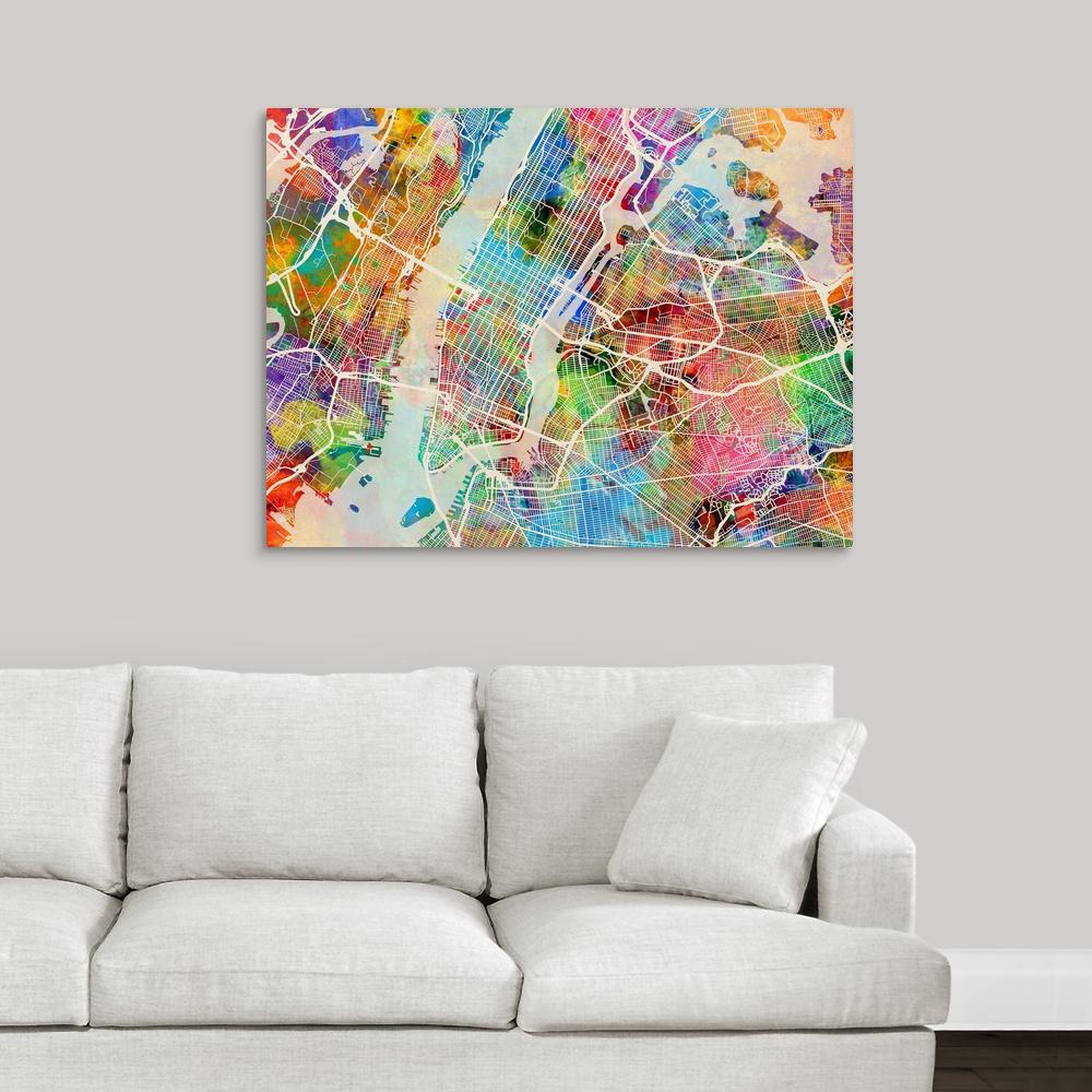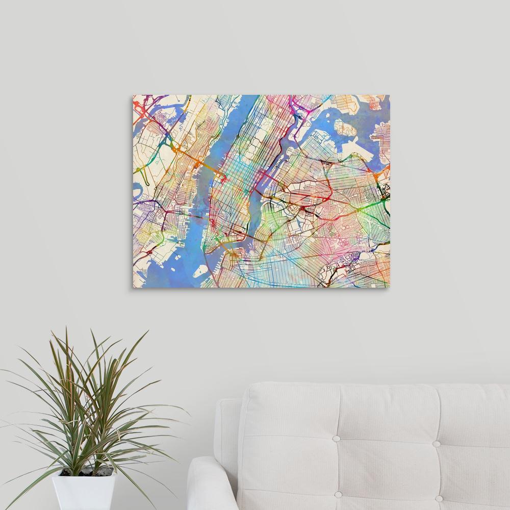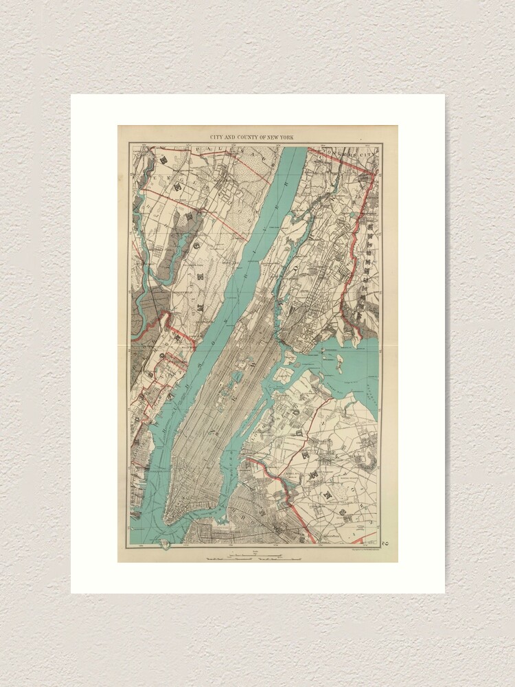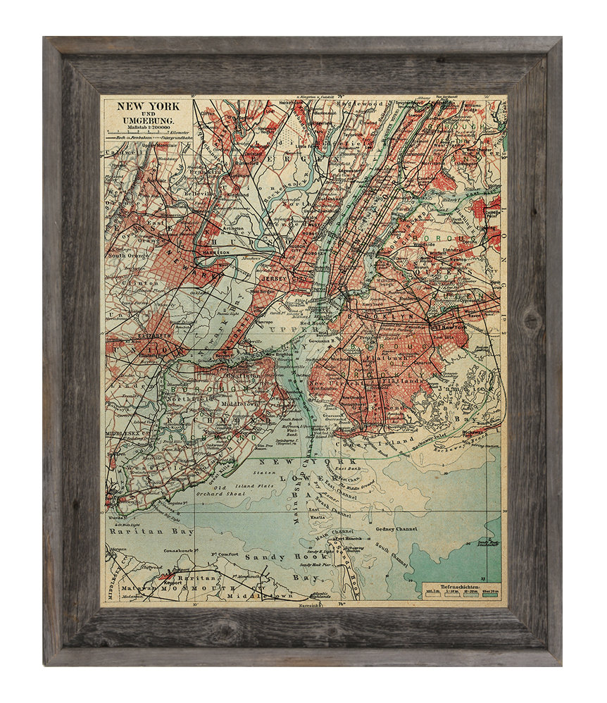 Click Wall Art Vintage New York Map Picture Frame Graphic Art