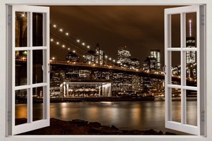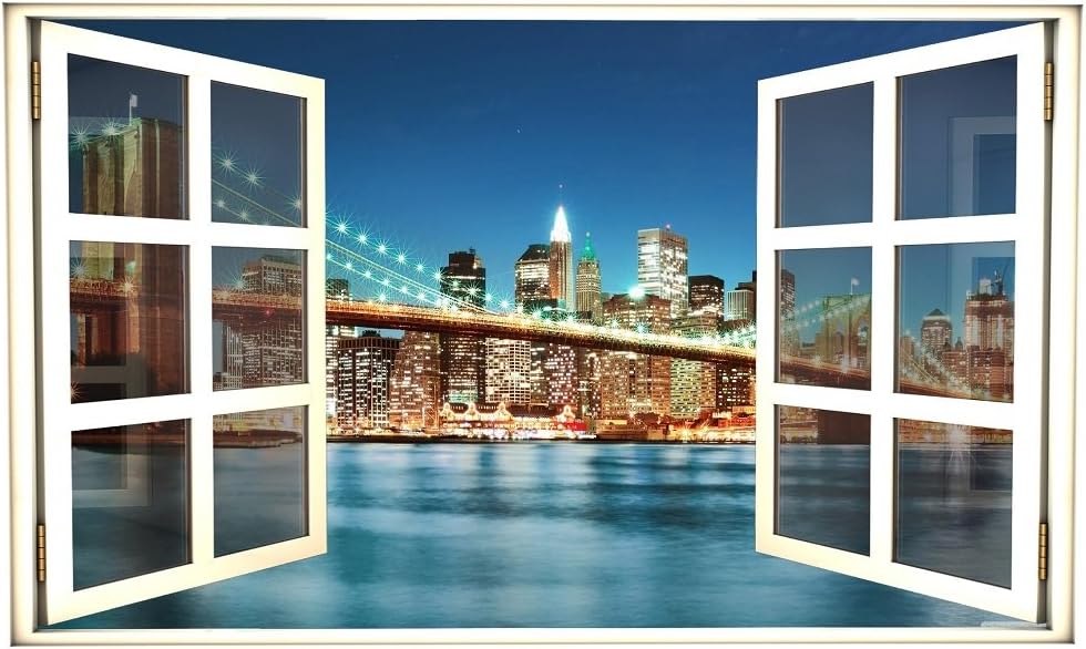 Amazon Com Greathomeart Removable Wall Decal Stickers New York City 3d Window Scenes Brooklyn Bridge Night View Vinyl Wall Murals For Living Room Home Decor Art 24x36 Inches Home Kitchen