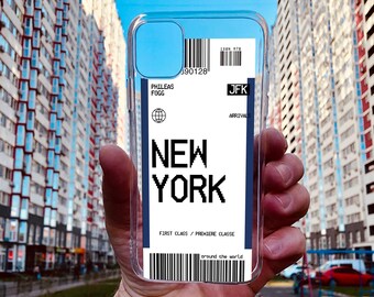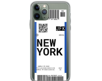 Perfect gift for aviation geeks frequent flyers and travel lovers. The most popular color. New york custom city name plane ticket case impact baggage tag travel passport clear phone case cover for iphone 11 pro max x xs xr max logicase.