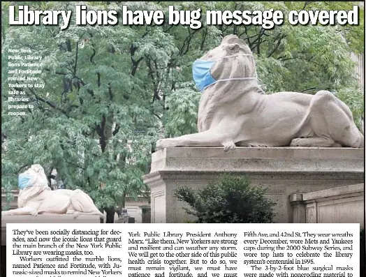 Nyc S Most Famous Lions Send Reminder Of Coronavirus Safety At Nypl