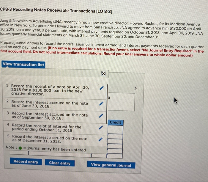 Solved Cp8 3 Recording Notes Receivable Transactions Lo
