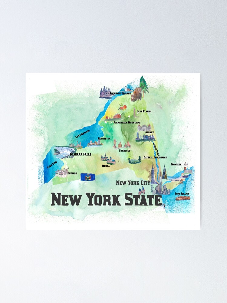 New York State Of Us Map Vector Outlines With Scales Of Miles And