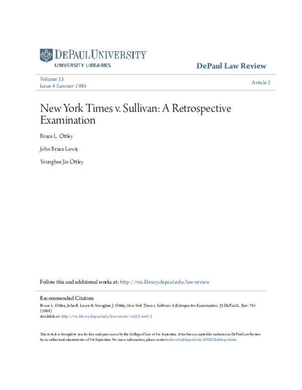 Pdf New York Times V Sullivan A Retrospective Examination www.academia.edu