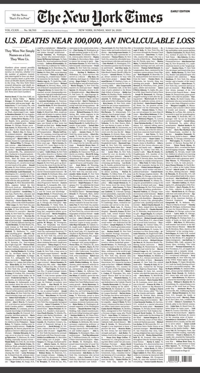New York Times Publishes Names Of 1 000 Lives Lost To Coronavirus dnyuz.com