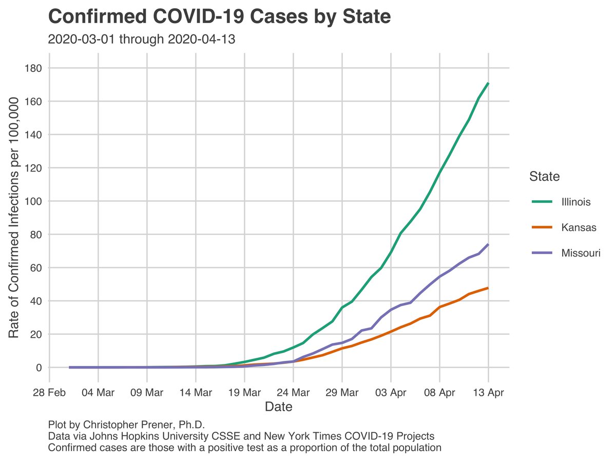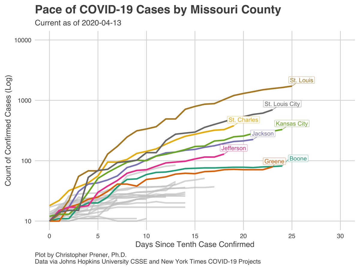 Chris Prener On Twitter Overall The Pace Of Growth In Cumulative Cases Is Slower No Longer Quickly Doubling Across Mo Il And Ks Within Missouri The Stlouis Metro Remains The Primary Hot