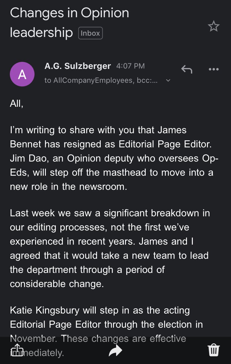 James Bennet Resigns As New York Times Opinion Editor After