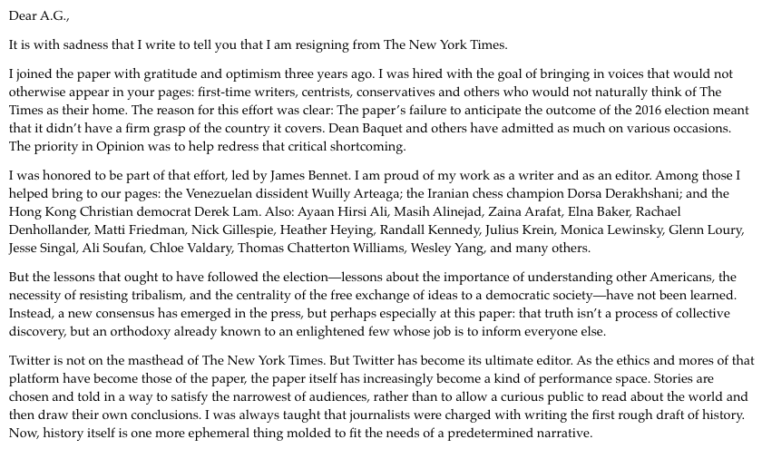 Nyt Opinion Writer Bari Weiss Resigns With Scathing Letter Daily