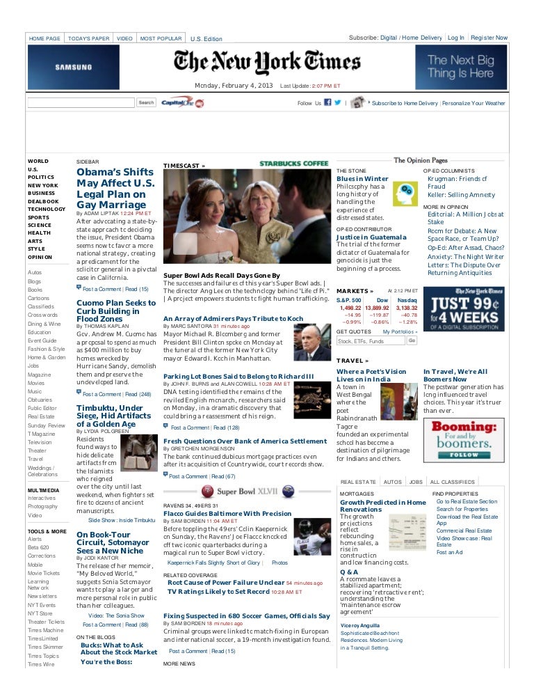 C21 Super Bowl Ad Featured New York Times Homepage 2013 www.slideshare.net