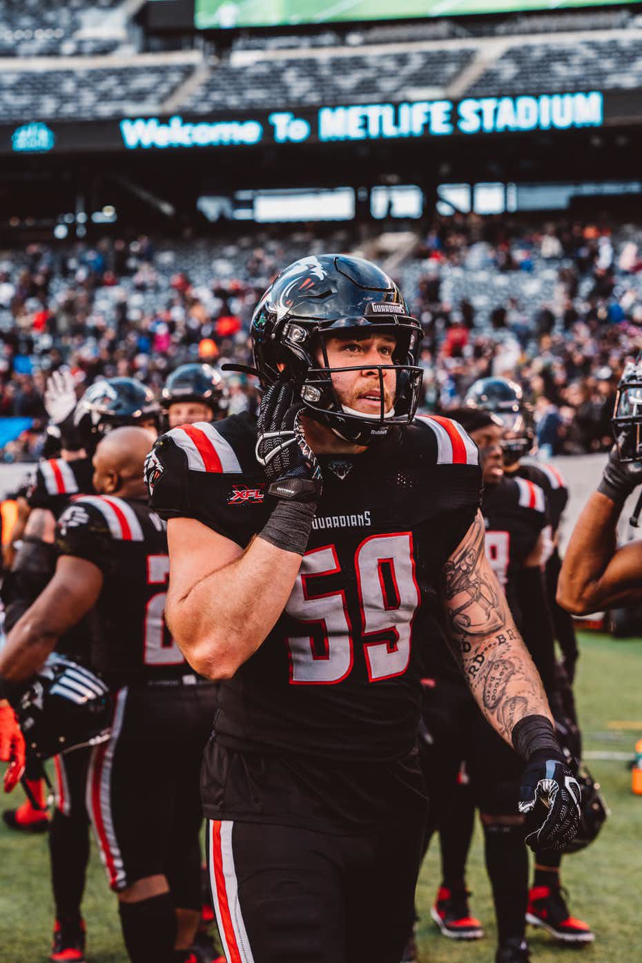Ben Heeney Of The New York Guardians Reacts To A Play During The