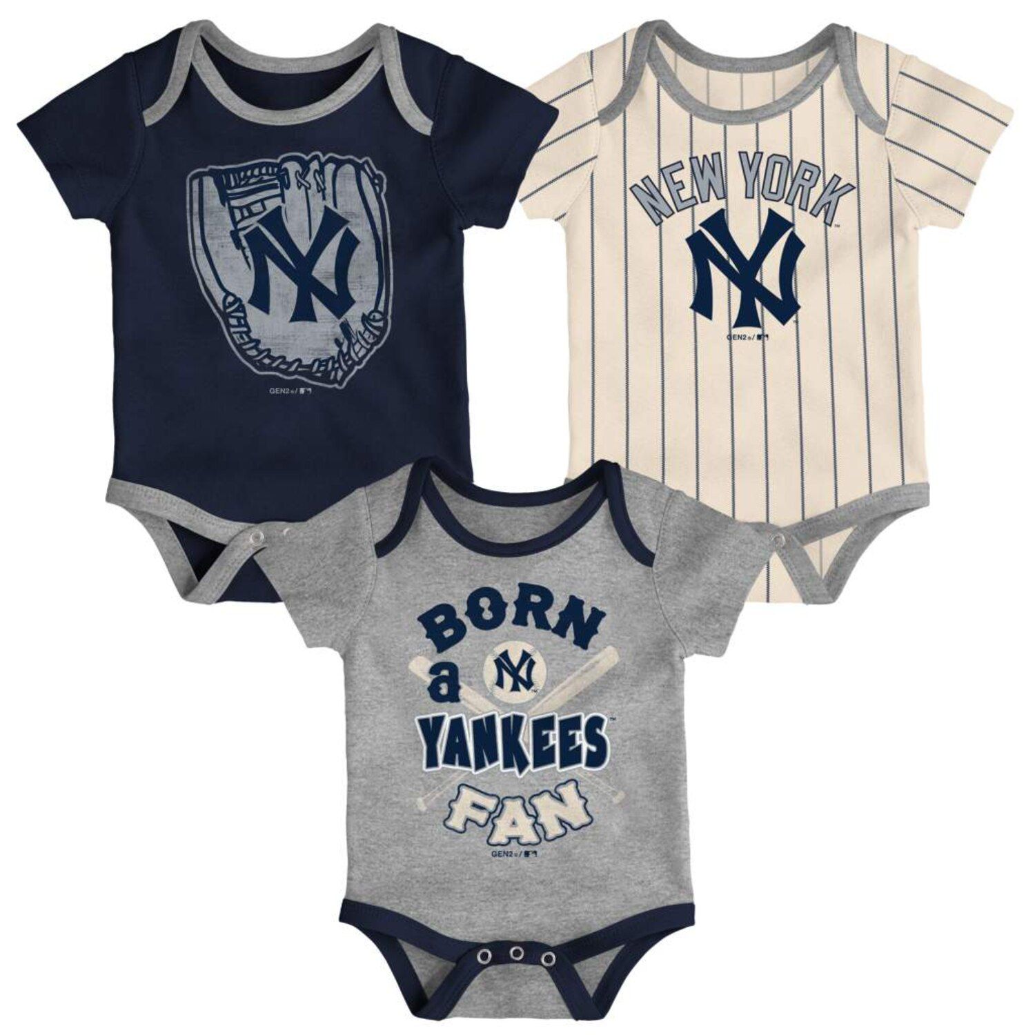 New York Yankees Baby Cooperstown Navy Gray Pinstriped 3 Pack www.detroitgamegear.com