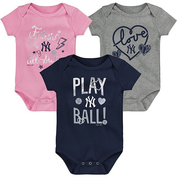 New York Yankees Girls Team Color 3pc Creeper Bodysuit Set Infant www.minisportsfan.com