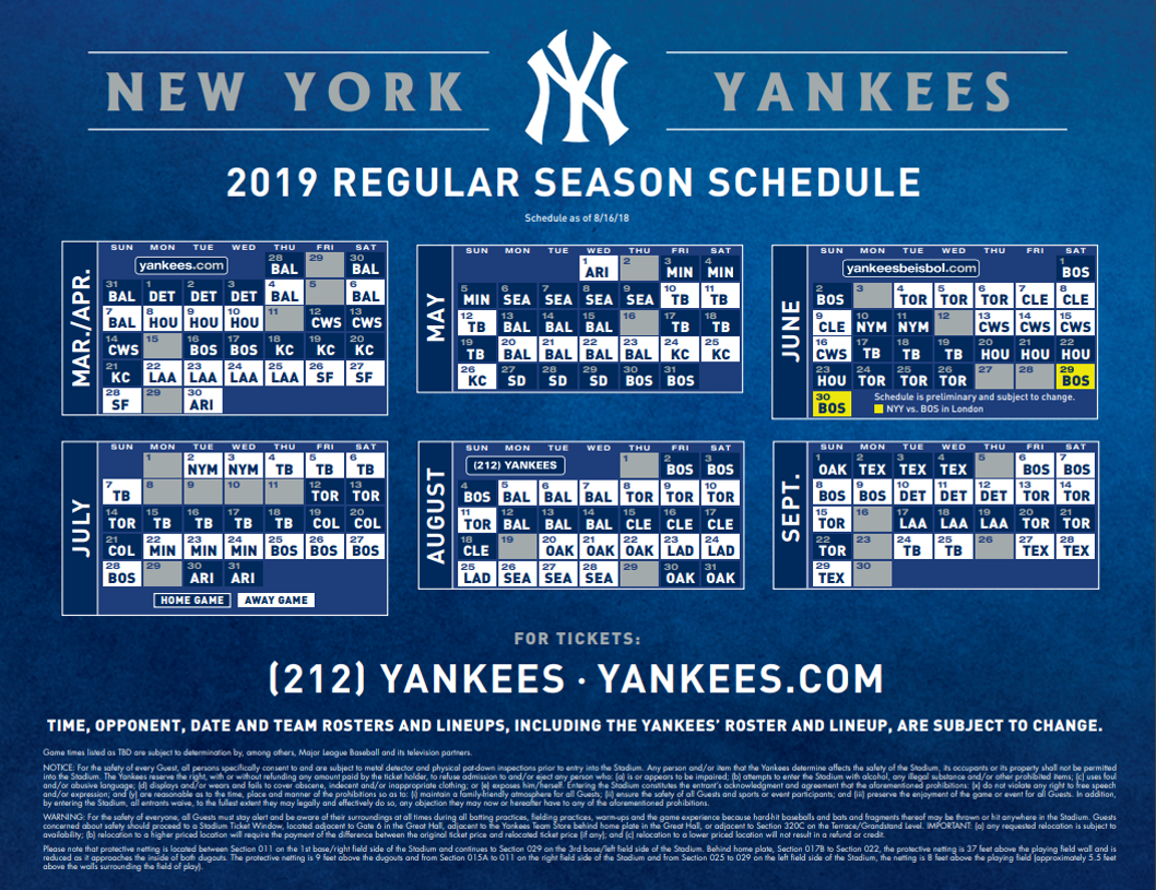 Printable 2019 Washington Nationals Schedule Yankees Schedule