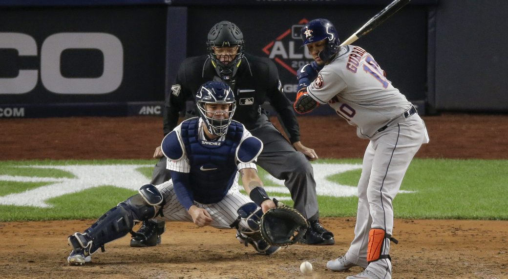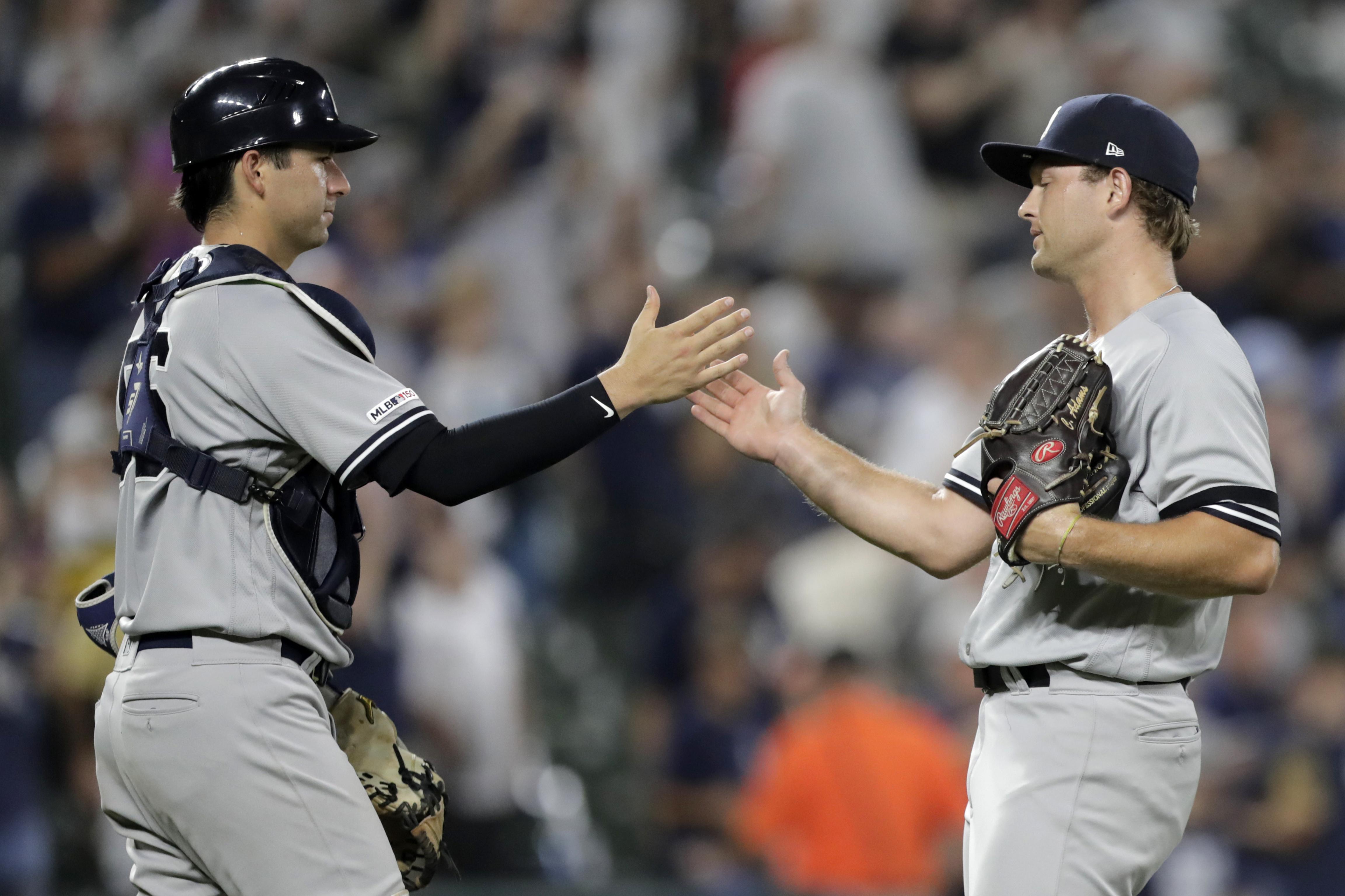 Yankees Catcher Gary Sanchez Congratulates Aroldis Chapman Gold