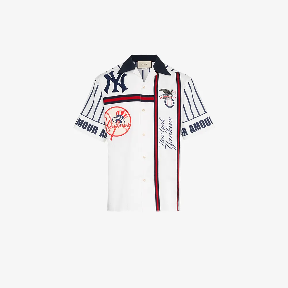 Beige New York Yankees Embroidered Striped Wool Blazer Gucci