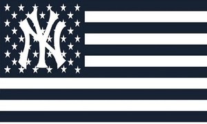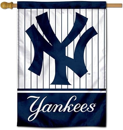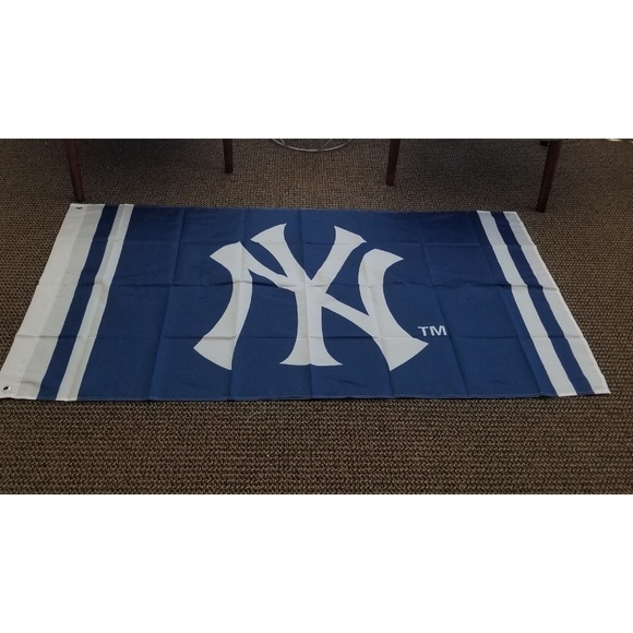 New york yankees flag 3x5. Officially licensed new york yankees 3 x 5 flag with attached d rings. Fly on a flagpole or hang it on a wall. The imprint is 100 show through to the backside with a long lasting color fast die.
