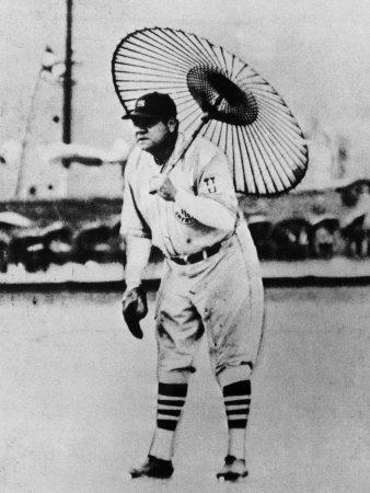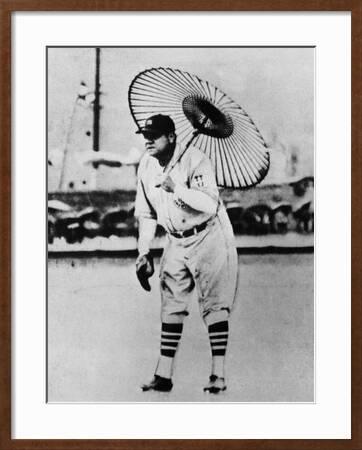New York Yankees Babe Ruth Holding Umbrella During Japanese www.art.com