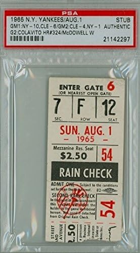1965 New York Yankees Ticket Stub Vs Cleveland Indians Rocky www.amazon.com