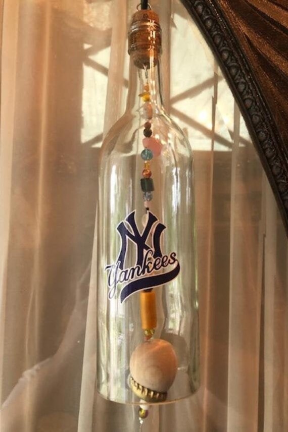 New York Yankees Recycled Wine Bottle Wind Chime Etsy www.etsy.com