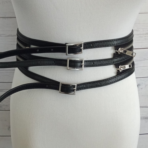 New York Company Beige Faux Leather Ruching Metallic Hardware