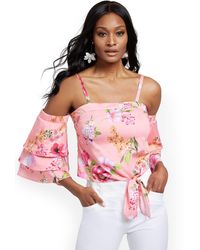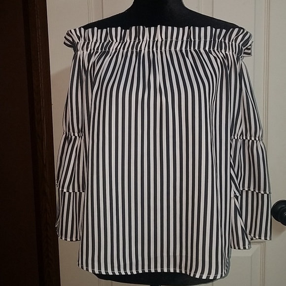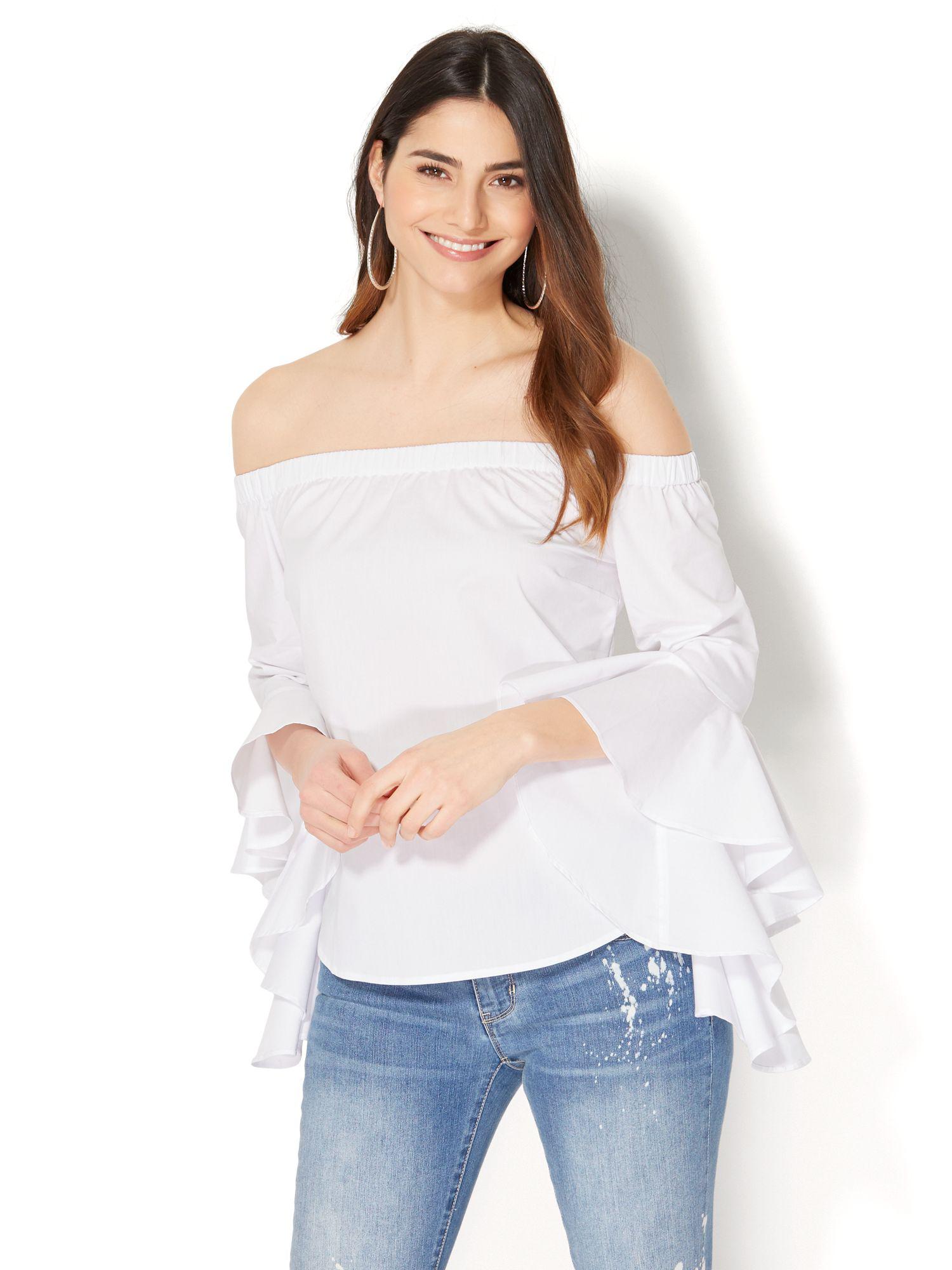 New York Company Synthetic Aimee Off The Shoulder Top Eva Mendes Collection In Black White Black Lyst