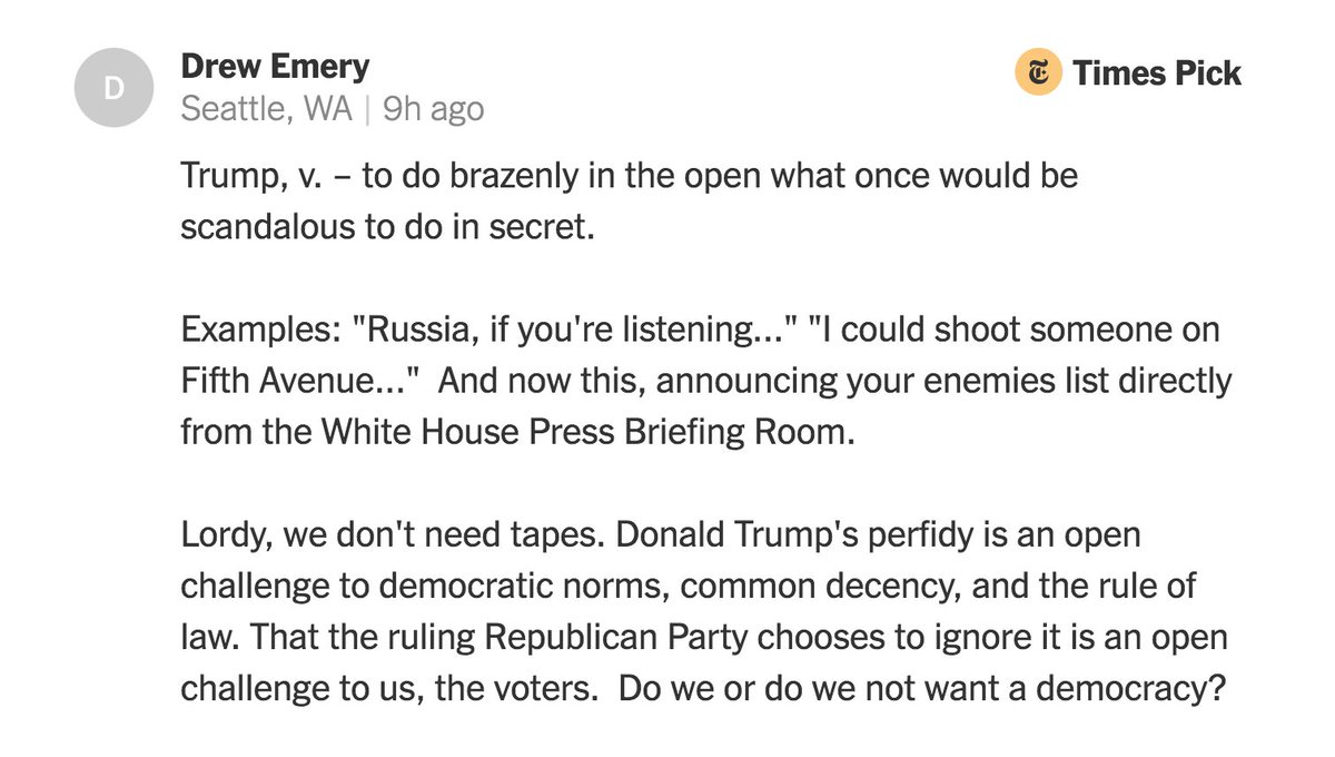 New York Times Opinion On Twitter Trump V To Do Brazenly In The Open What Once Would Be Scandalous To Do In Secret Writes Drew Emery In A Comment On John