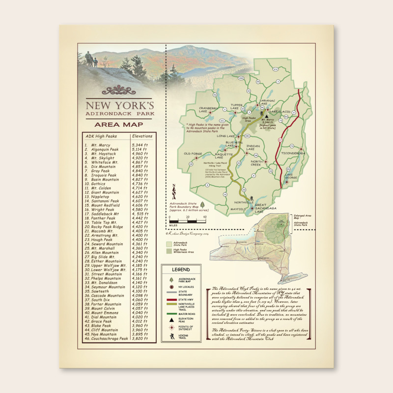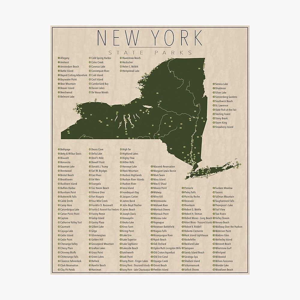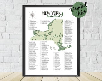 New York State Parks Map Printable 16x20 Gift For Etsy