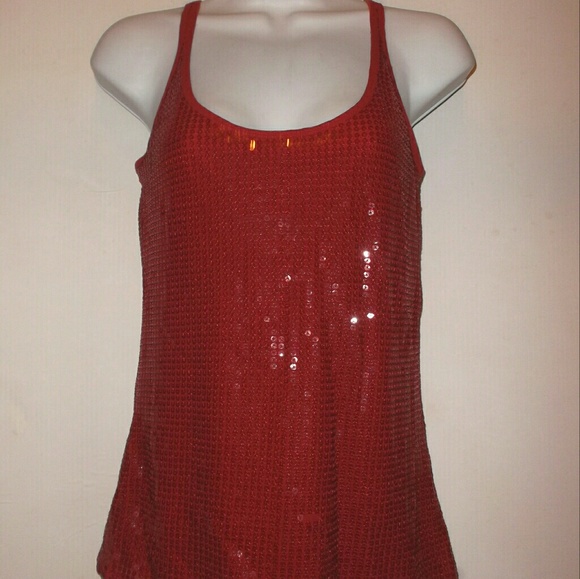 New York And Company Tops Red Ny Co Sequin Tank Top Womens poshmark.com