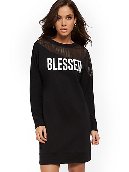 New York Company Soho Street Hooded Sweatshirt Dress In