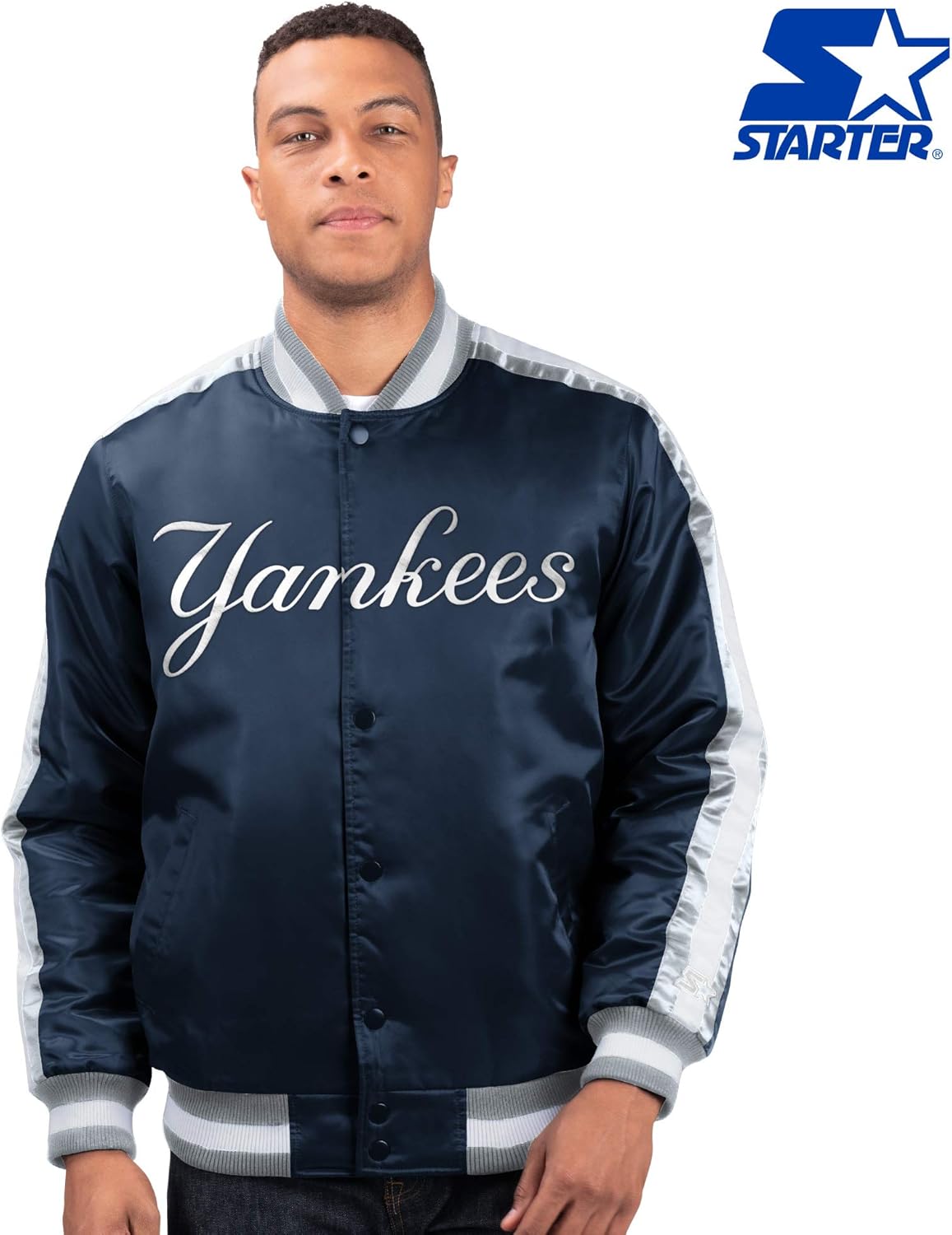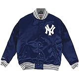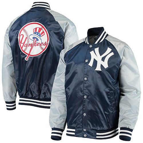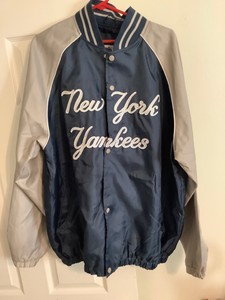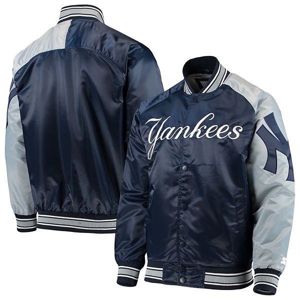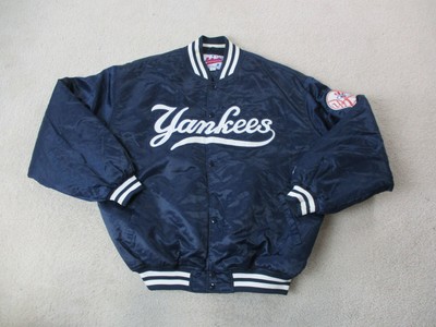 Rare Vintage 80s Starter Mlb New York Yankees Navy Blue Satin Bomber Button Up Baseball Jacket Size L Xl