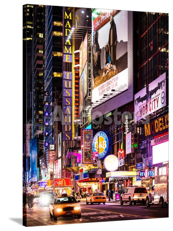 Nyc Urban Scene With Yellow Taxis By Night 42nd Street And Times