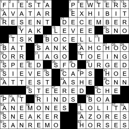 York Times Crossword Answers 22 January 2014 New York Times