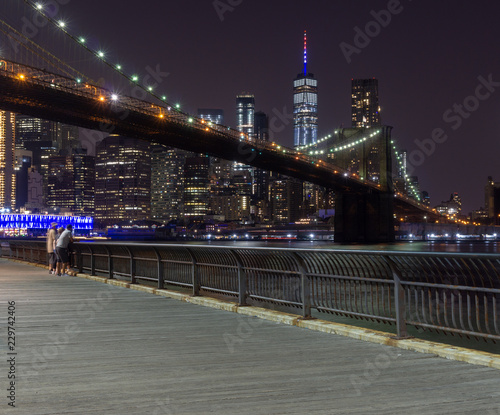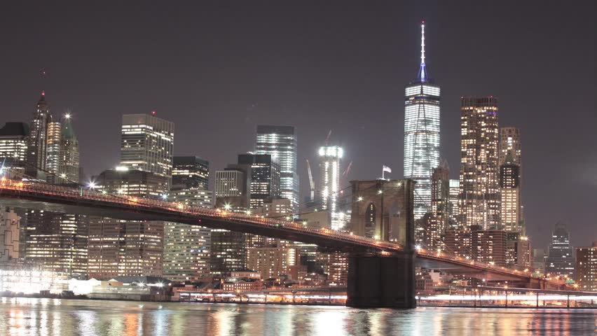 Brooklyn Bridge During The Night Time In New York City Editorial