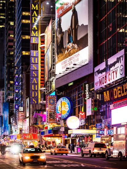 Nyc Urban Scene With Yellow Taxis By Night 42nd Street And Times