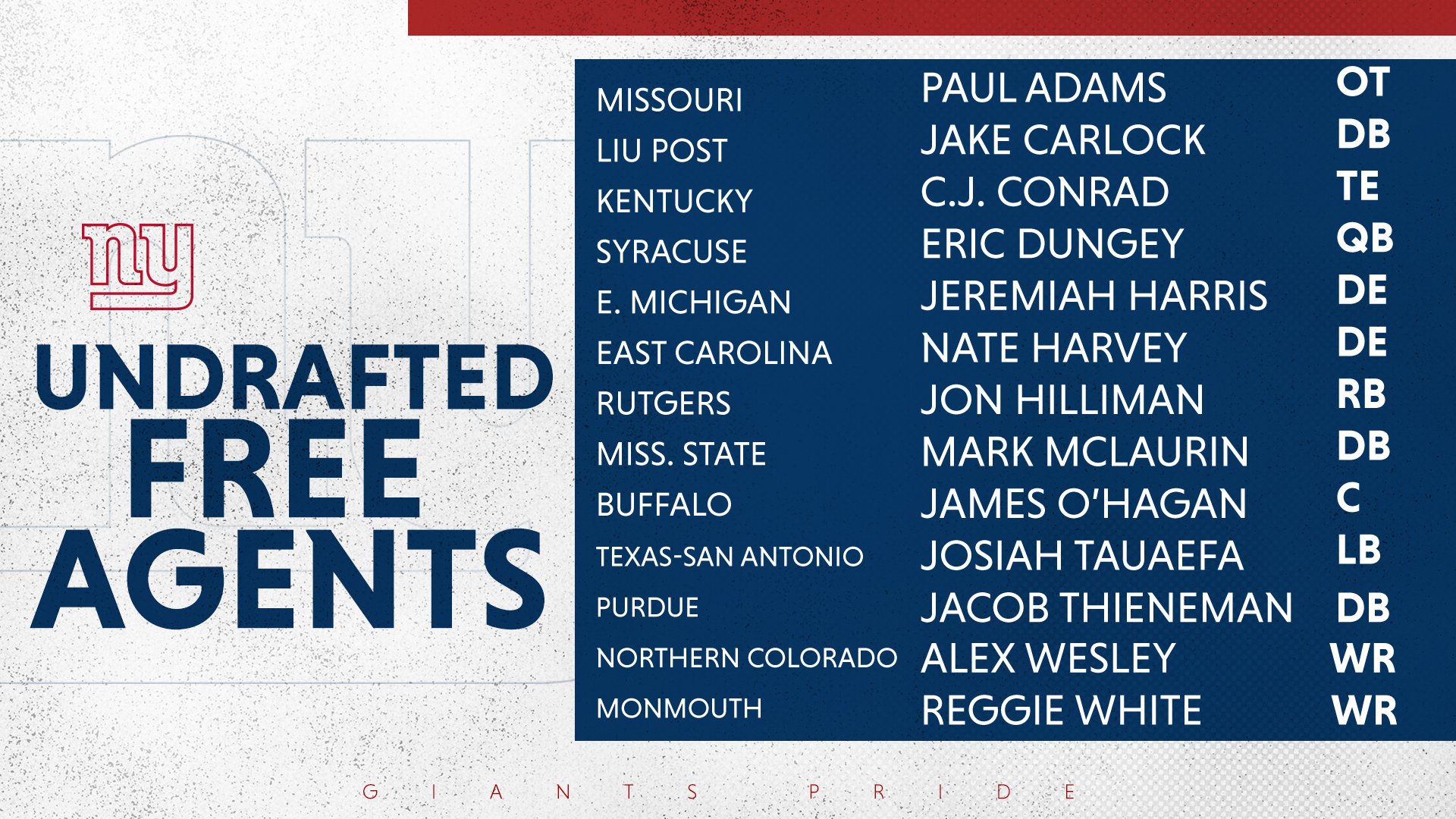 New Udfa Signing And New York Giants Center James O Hagan Finished Tied Last Season With The Draft Class Lowest Pressure Rate Allowed Among Centers Via Pff Nygiants