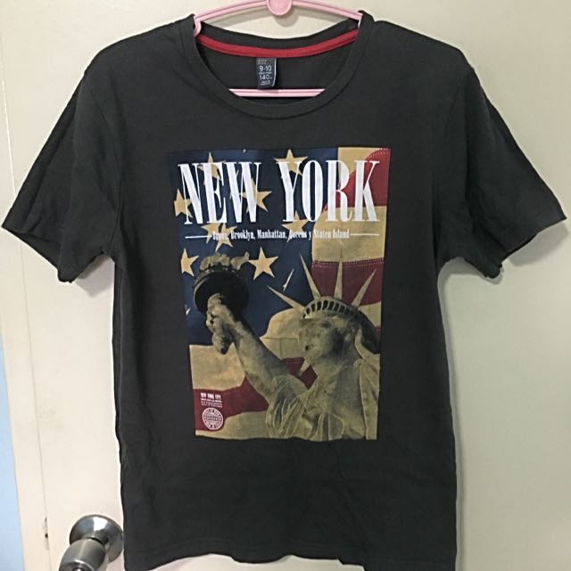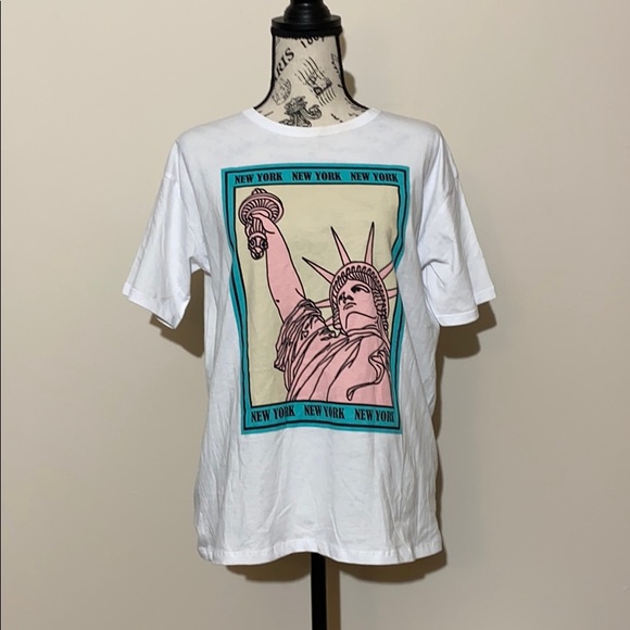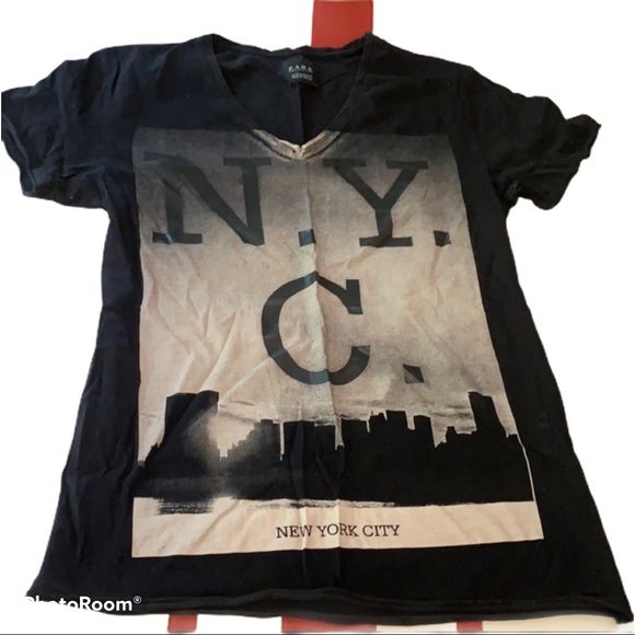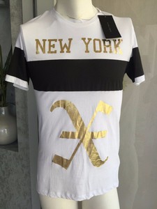 New Zara Man White Blackgold Slogan New York T Shirt Stripes Size